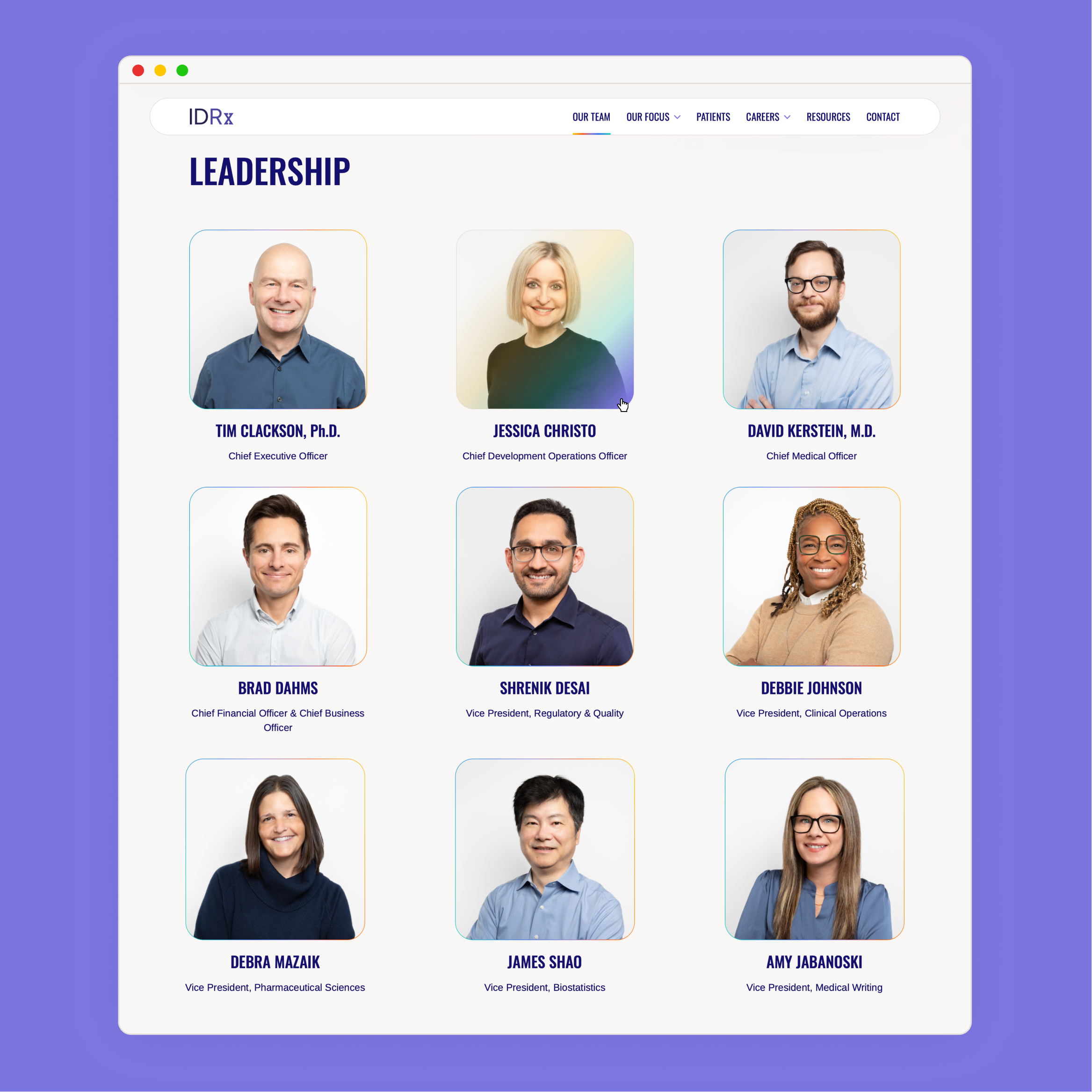 - More dynamic, human-centric imagery connected with IDRx’s clinical ambitions.