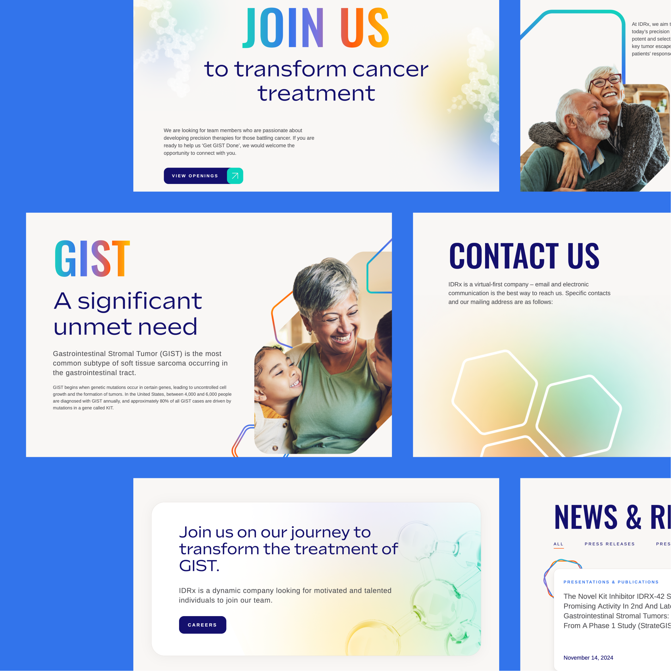 IDRx was created with an unusually clear scientific mission: a single, rationally designed small-molecule therapy for KIT-driven GIST. Their team understood the disease, resistance mechanisms, and patient need with exceptional depth. ICS partnered with IDRx to translate that clarity into a cohesive brand, a refined investor and scientific deck, and a streamlined website that conveyed their potential with confidence and composure.